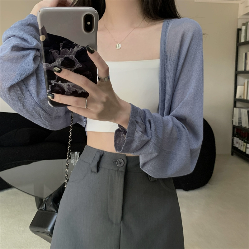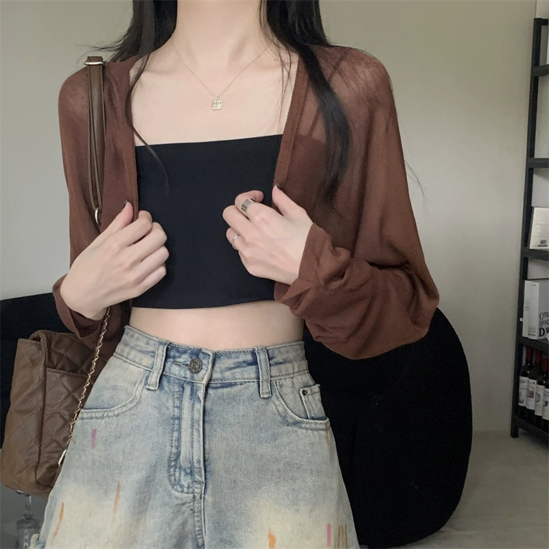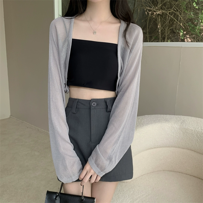 White tulle ice silk suspender skirt see-through knitted cardigan