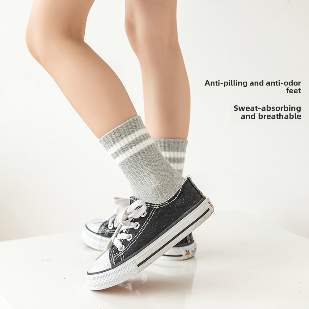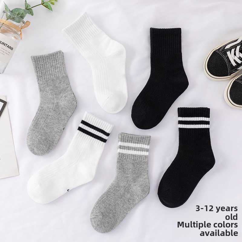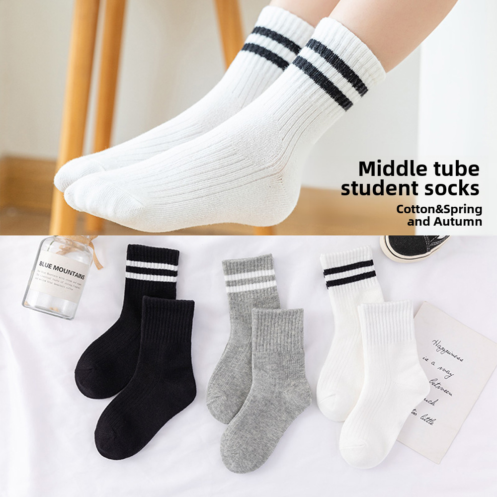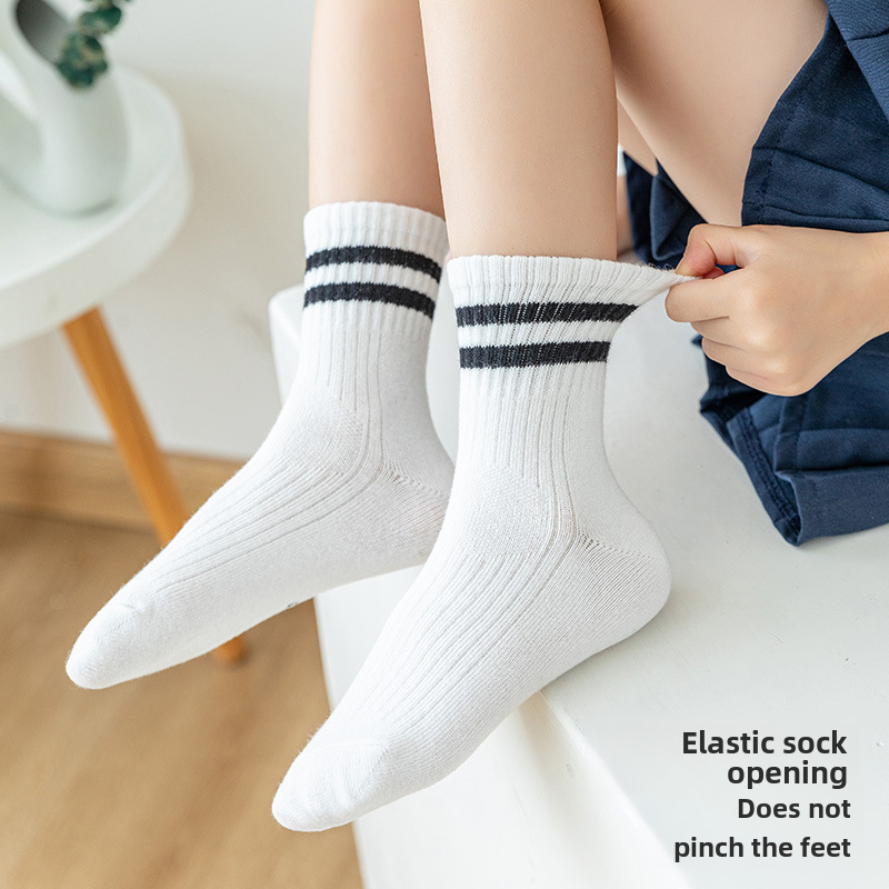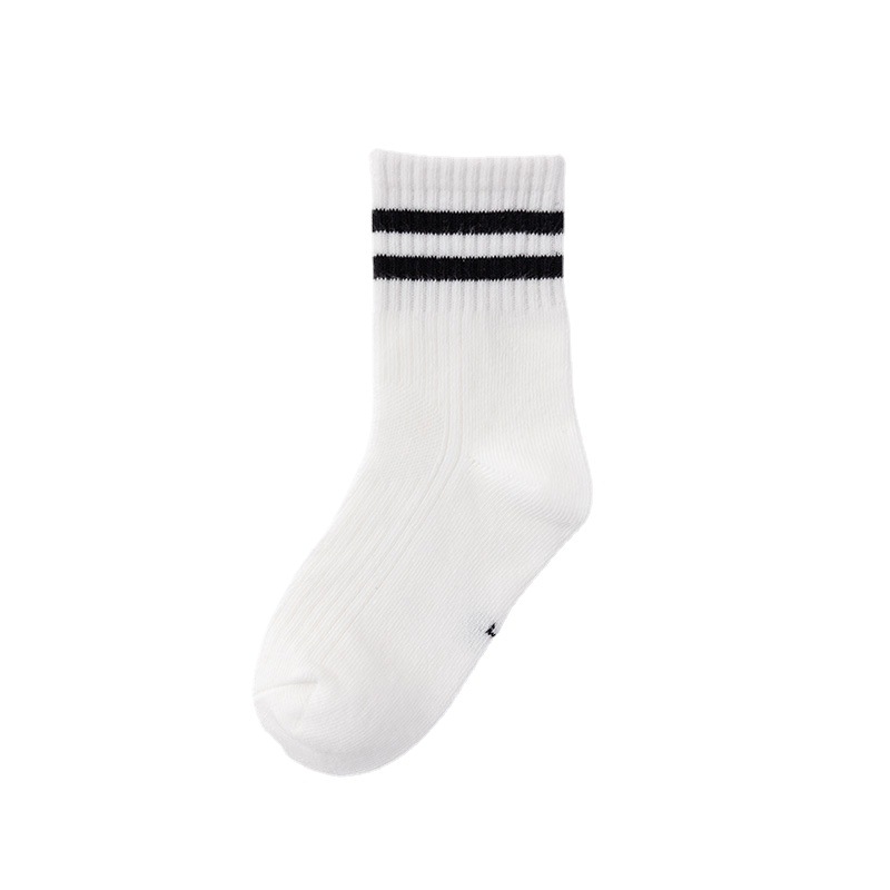 White two bars student socks spring and autumn mid-barrel sports children’s socks knitted socks boys and girls cotton wholesale