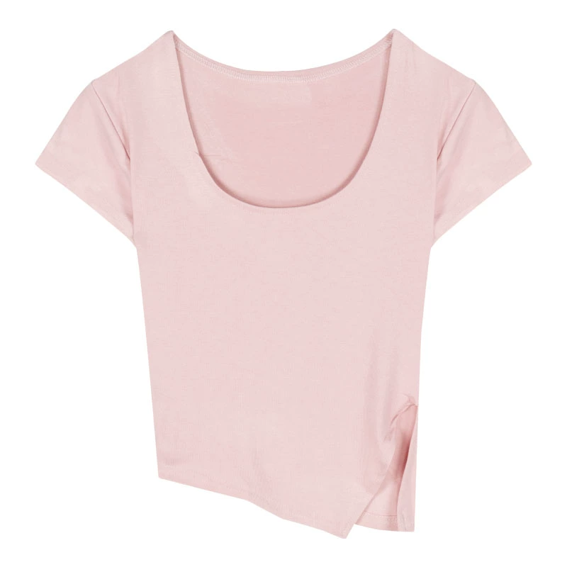 White u-neck summer hem slim top short-sleeved T-shirt