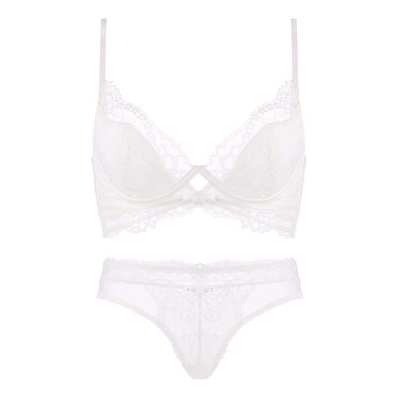 White Underwear Women’s Thin Large Chest Small Chest Cuff Anti-sagging French Style Sexy Lace Ultra-thin Bra suit