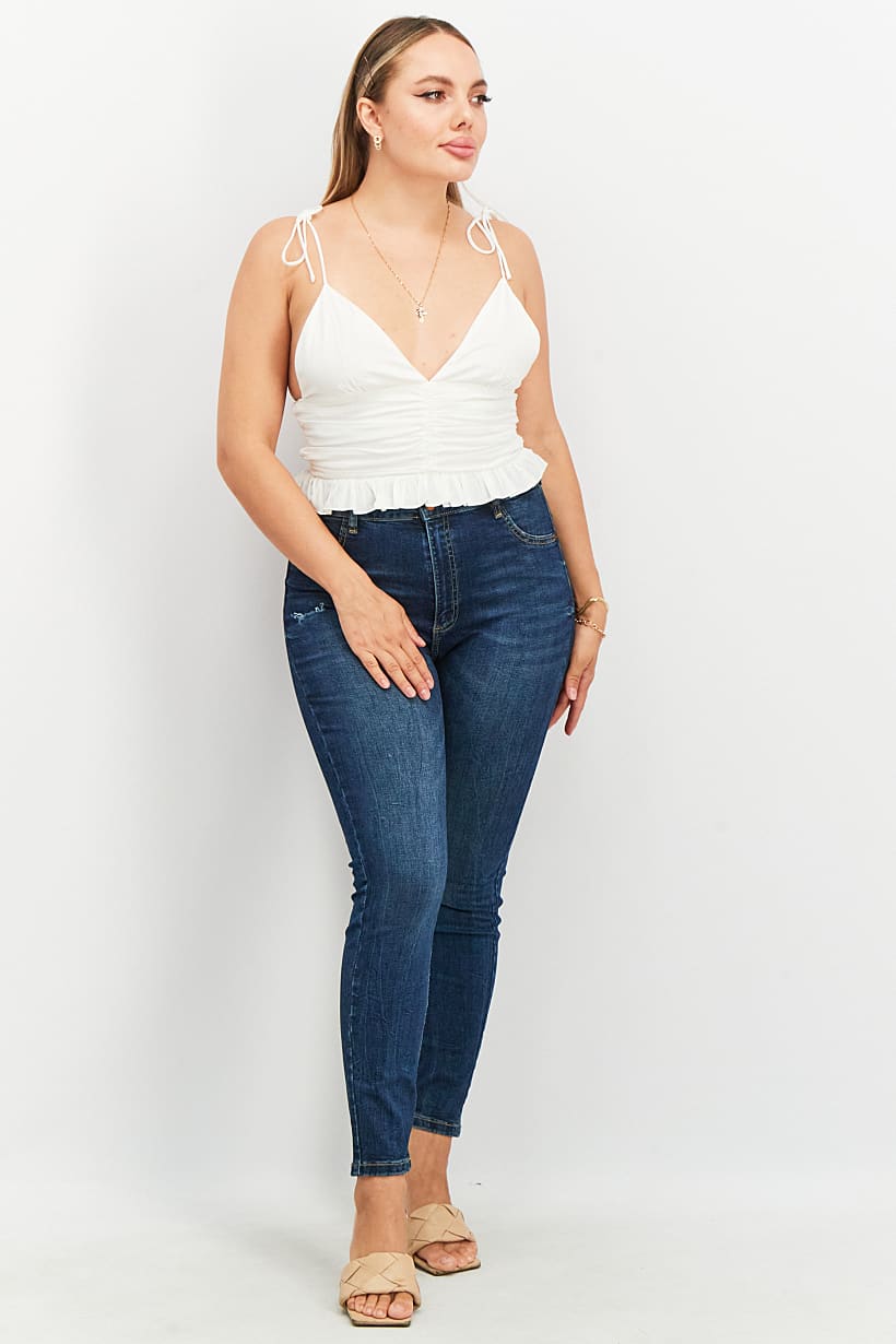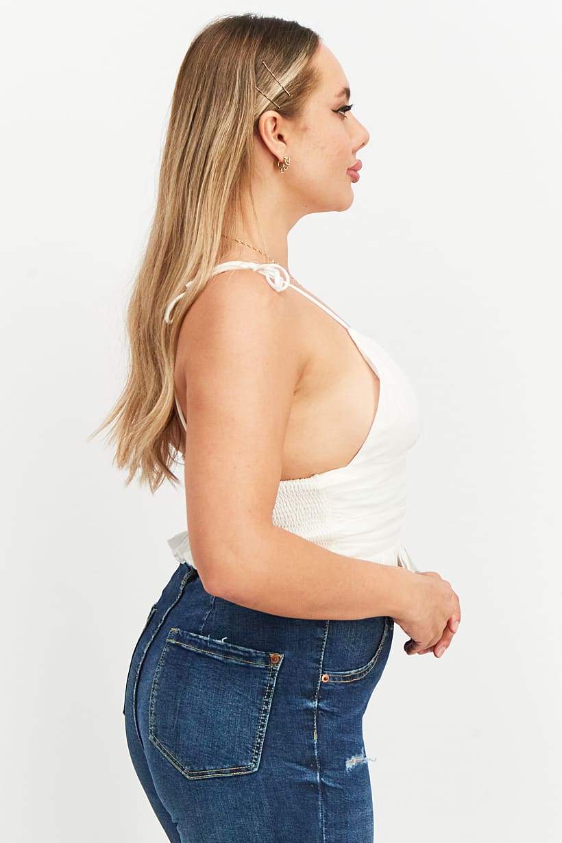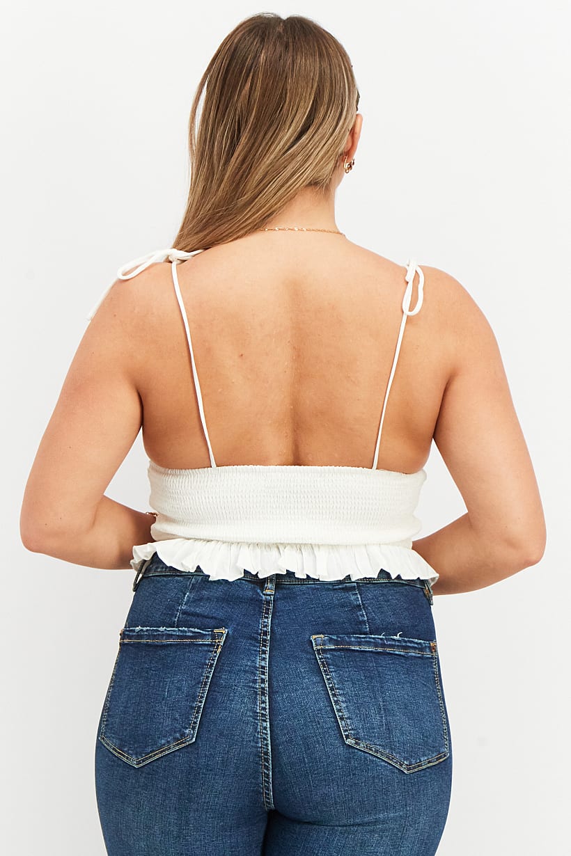| nameOriginal | Women V Neck Tie Sleeve Ruched Cami Top, Whtie |