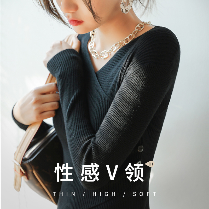 White V-neck Fashion Stylish Base Shirt Women's Spring Autumn and Winter Cashmere Long-sleeved All-match Sweater Knitted Shirt
