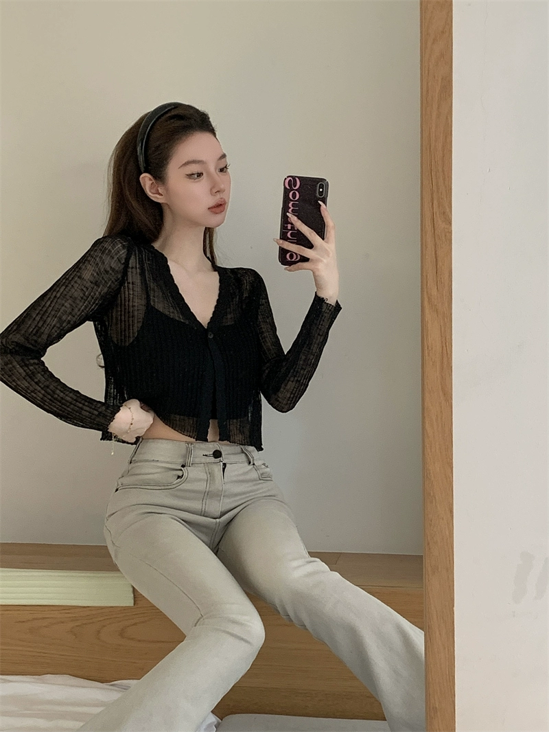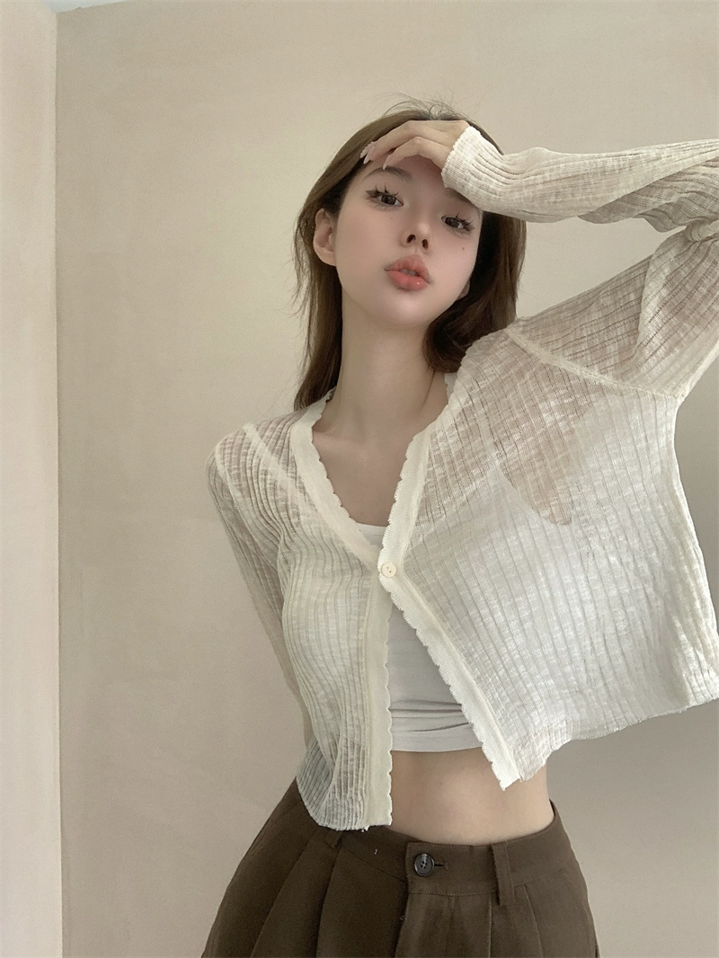 | nameOriginal | White V-neck long-sleeved sweet thin knitted cardigan |