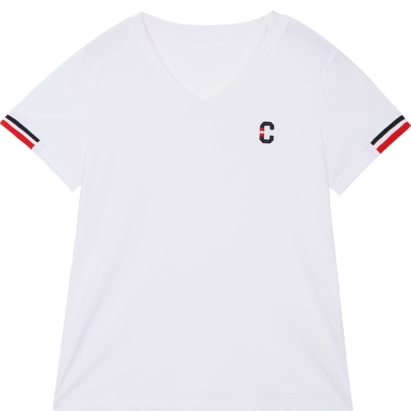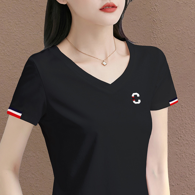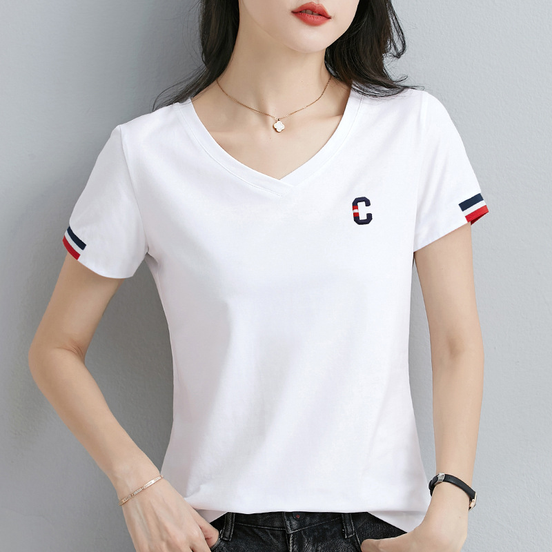 | nameOriginal | White V-neck short sleeve T-shirt women's cotton color matching embroidered top 2024 new leisure sports mother T-shirt |