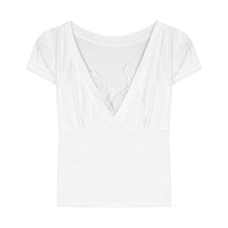 | nameOriginal | White v-neck short-sleeved right shoulder summer slimming niche T-shirt |
