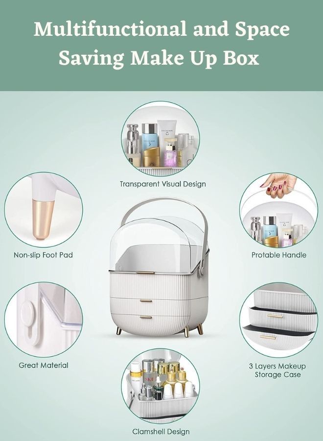 | nameOriginal | Makeup Organizer Waterproof And Dustproof Large Cosmetics Storage Display Box With Lid And Drawers Suitable For Bathroom And Bedroom Vanity Dresser White Color |