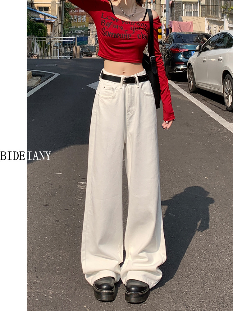 | nameOriginal | White wide-leg jeans for women 2024 early spring new high waist loose slimming drape fashionable all-match mop pants |
