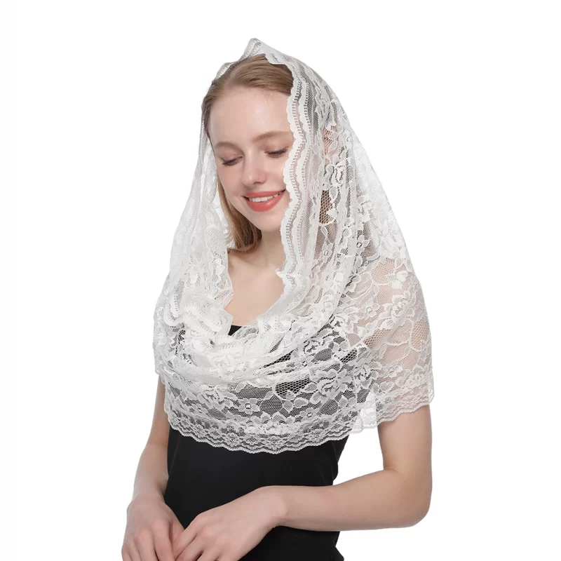 | nameOriginal | White Women Spanish Mantilla Lace Catholic Veil Chapel Scarf |