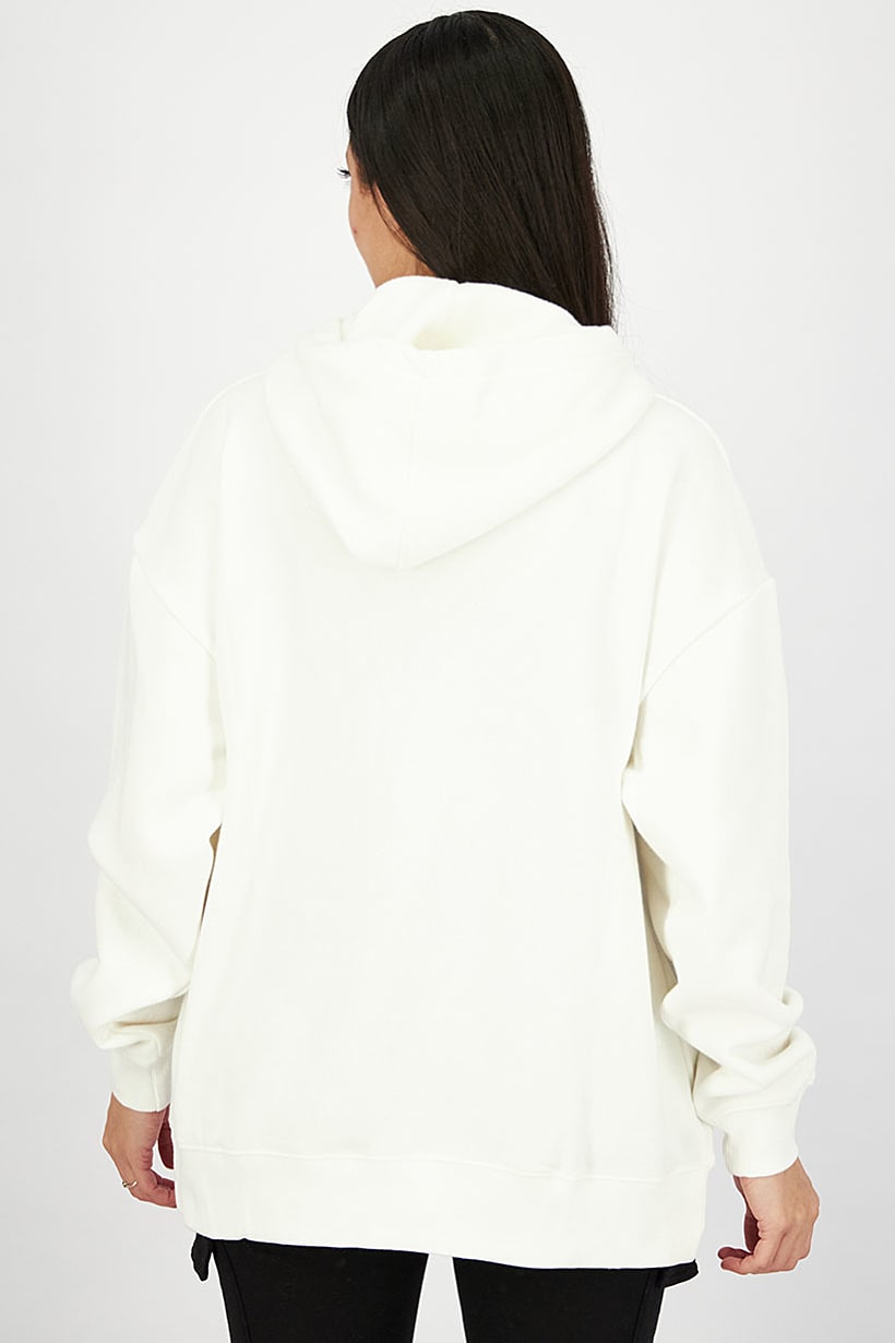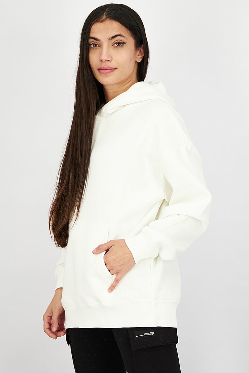 Care : Machine washable, Ideal For : Women, Size shown : International, Sleeve Length : Long Sleeve, Thickness : Medium, Types of Hem : Straight hem, Types of Neckline & Collar : Hood, Disclaimer : Product color may slightly vary due to photographic lighting sources or your monitor settings., Fabrics : 80% Cotton, 20% Polyester, Pattern & Print : Plain/Solid, Types of Closures : Pullover, Color Family : White, Fit : Sportswear Fit, Sportswear Type : Sweatshirts, Type of Sport : Outdoors, Occasion : Sport,