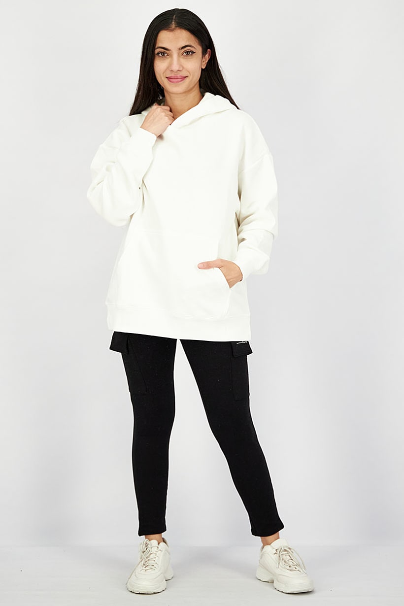 Women Clothing, Sportswear, women hooded front pocket plain sweatshirt white