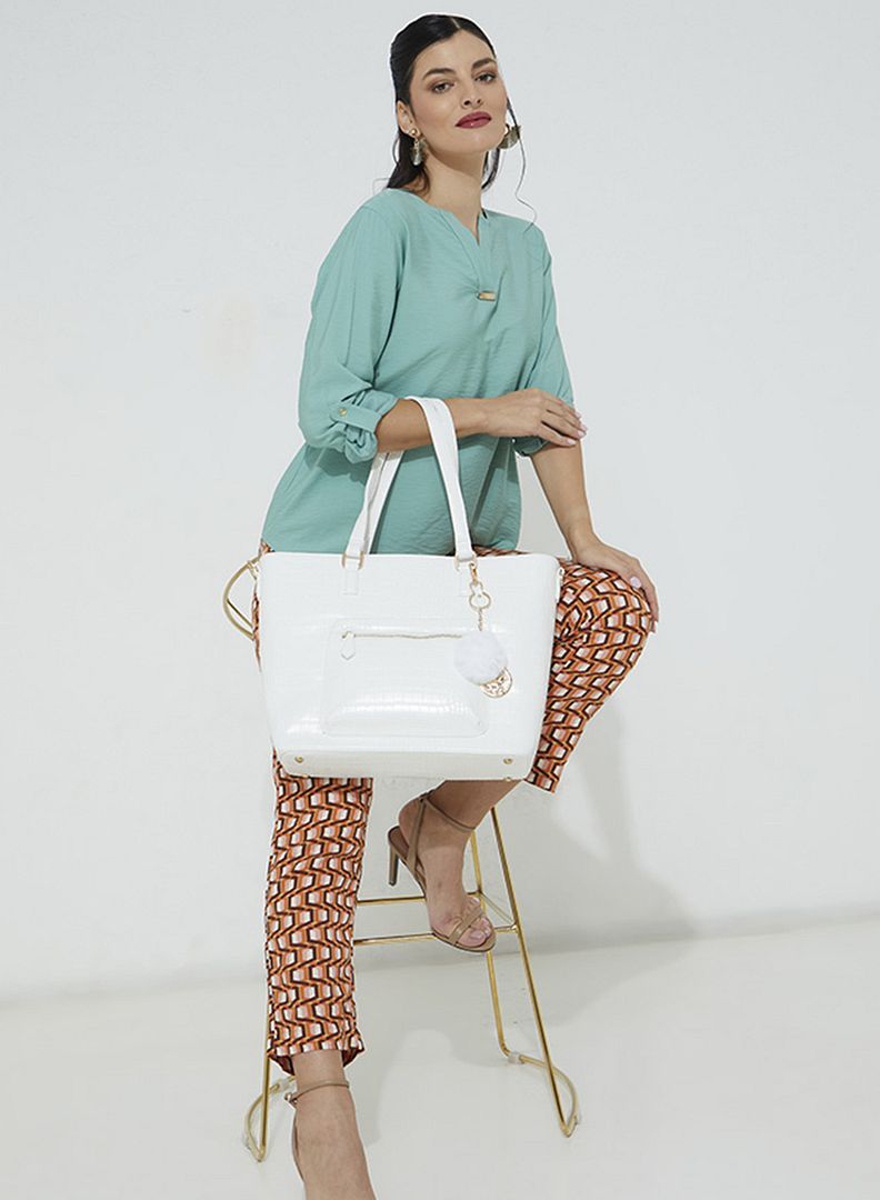 Introducing our Women’s Tote Bag in White, the perfect accessory for any fashion-forward woman. This spacious tote bag is designed to carry all your essentials in style, whether you’re heading to work, running errands, or going out for a night on the town. The sleek white color adds a touch of sophistication to any outfit, while the durable material ensures that your belongings stay safe and secure. With multiple compartments and pockets, you can easily organize your items and keep them within reach. The comfortable shoulder straps make it easy to carry, while the timeless design ensures that this tote bag will be a staple in your wardrobe for years to come. Upgrade your style game with our Women’s Tote Bag in White today!