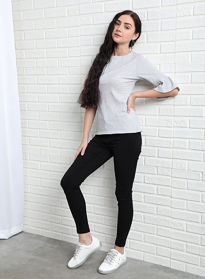 Introducing our Round Neck Bell Sleeve Woven Top in White, the perfect addition to your wardrobe for any occasion. This top features a classic round neckline and elegant bell sleeves that add a touch of sophistication to your outfit. The woven fabric is lightweight and breathable, making it comfortable to wear all day long. The white color is versatile and easy to style with any bottom, from jeans to skirts. Whether you’re dressing up for a special event or keeping it casual for a day out, this top is a must-have for any fashion-forward woman. Upgrade your wardrobe with our Round Neck Bell Sleeve Woven Top in White today!