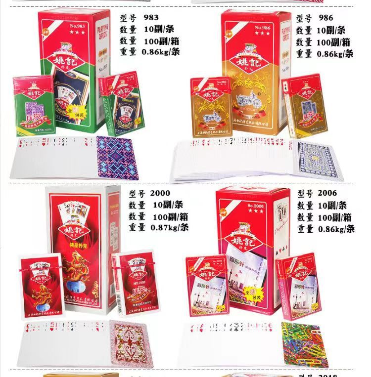 | nameOriginal | Wholesale 10 pairs of 50 pairs of postage Yao Ji poker 990/258/20.18 million Shengda card entertainment chess room |