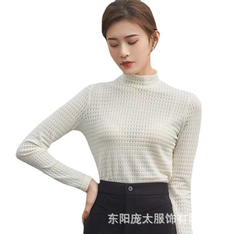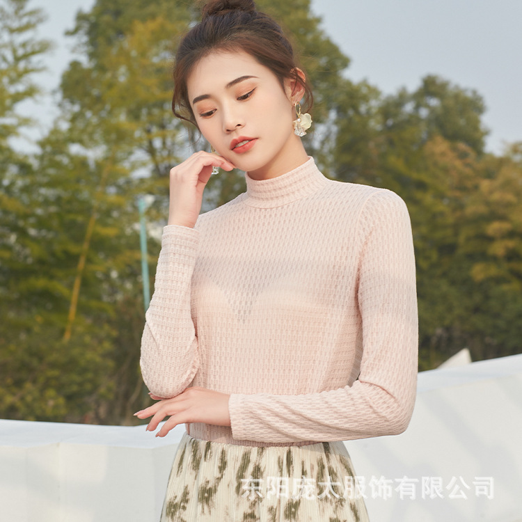 | nameOriginal | Wholesale 2022 autumn and winter New Korean style slim fit high elastic inner wear outer wear women's solid color half turtleneck lace bottoming shirt |