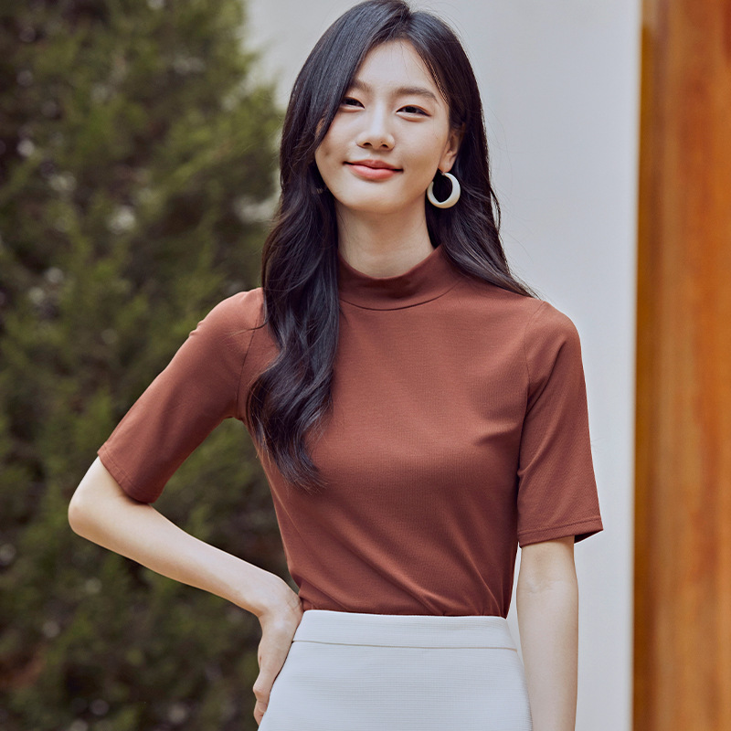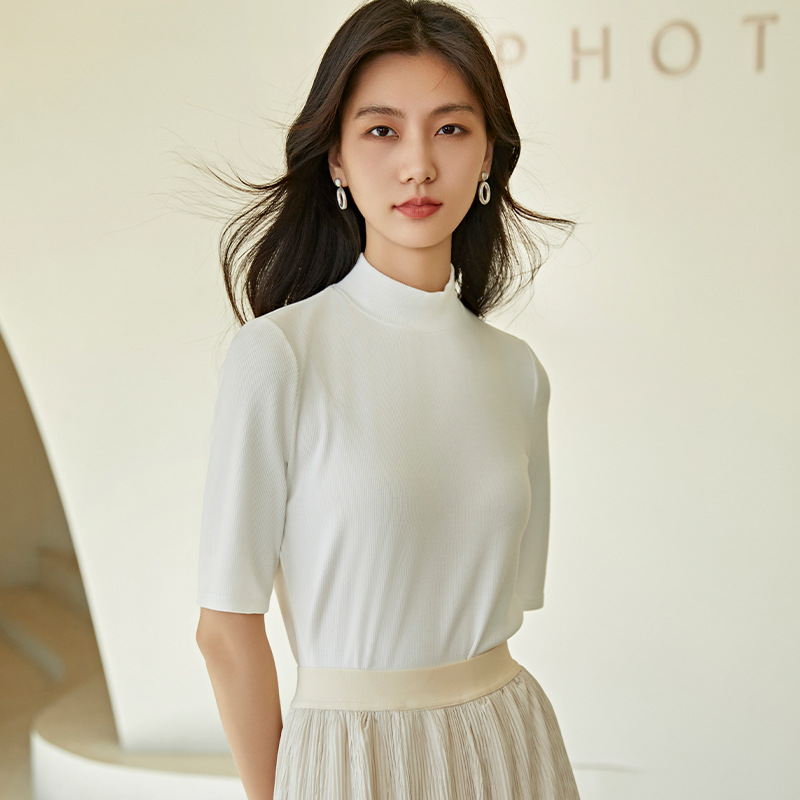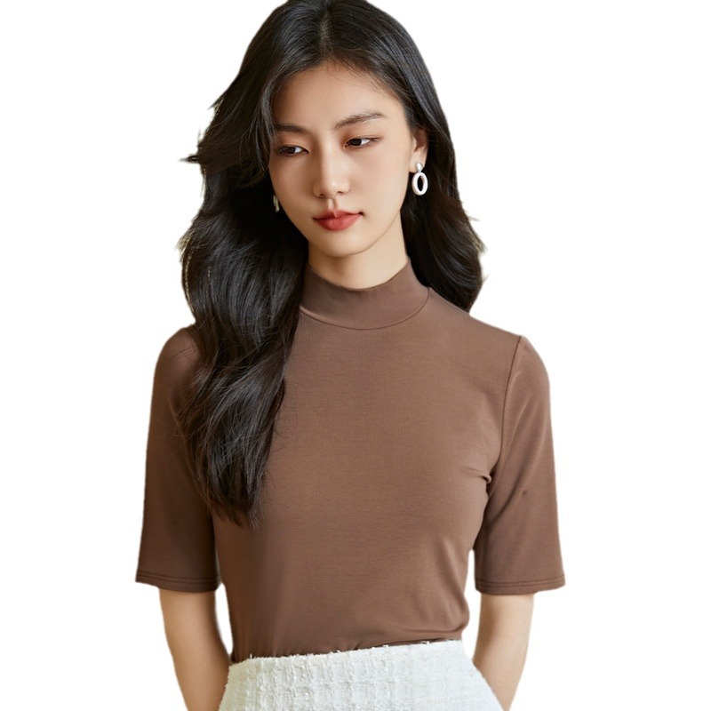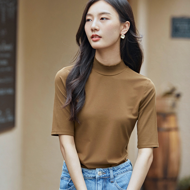 | nameOriginal | Wholesale 2023 Autumn New Korean style high elastic slim fit solid color half turtleneck half sleeve women's bottoming shirt |