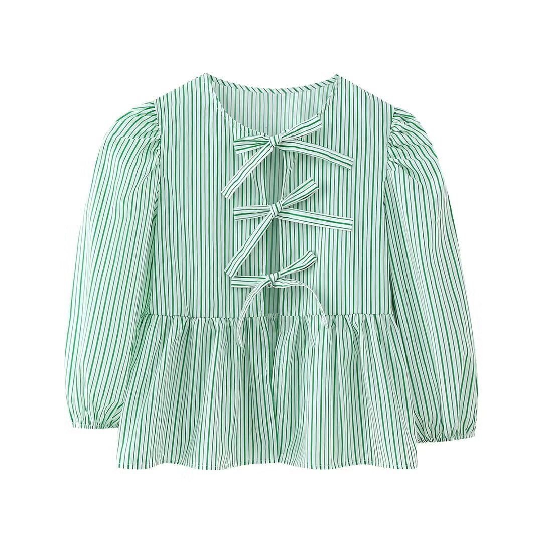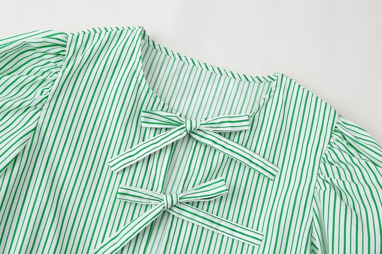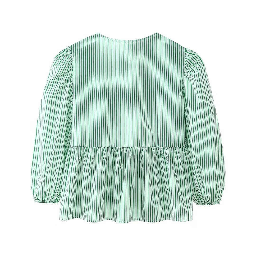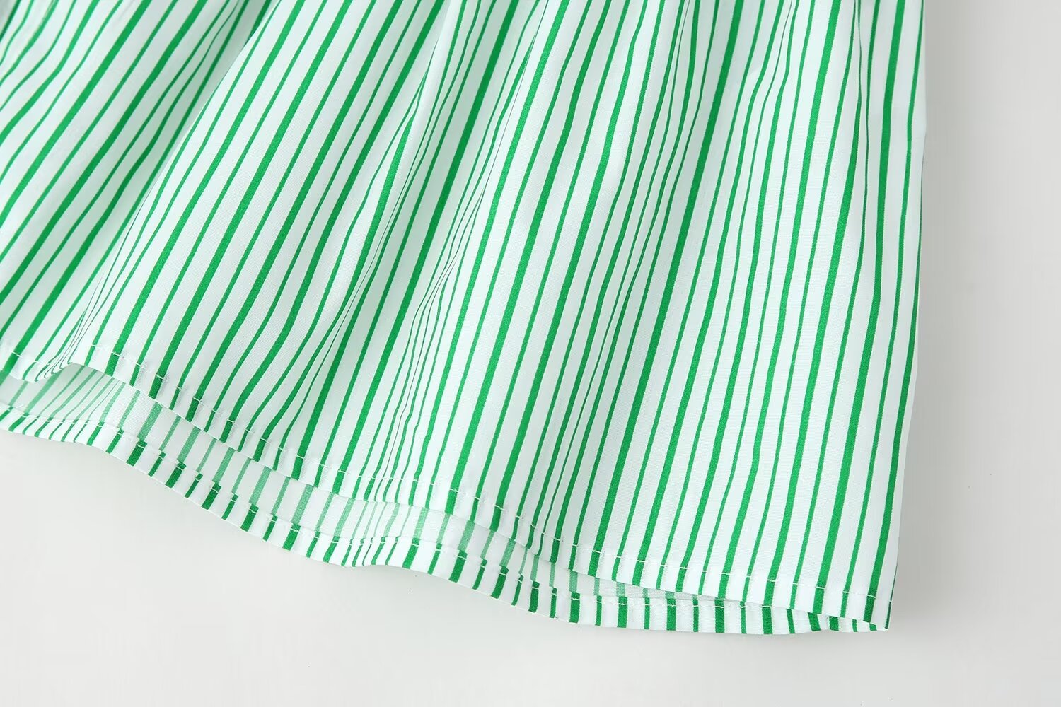 | nameOriginal | Wholesale 2024 spring new European American style women's green striped small top shirt |