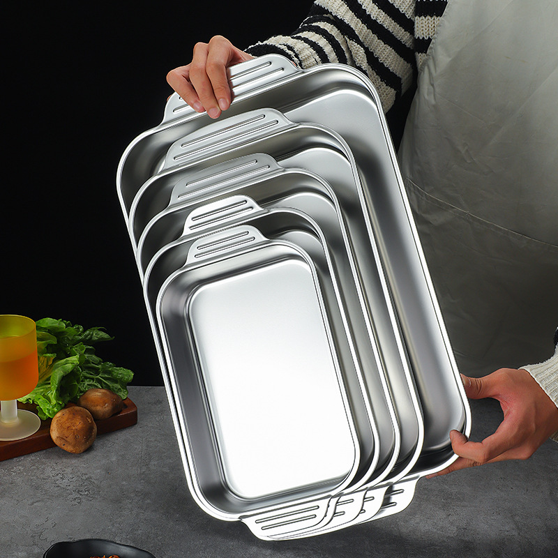 | nameOriginal | Wholesale 304 stainless steel flat thickened grilled fish plate commercial rectangular baking tray Golden Hot Pot bowl plate |