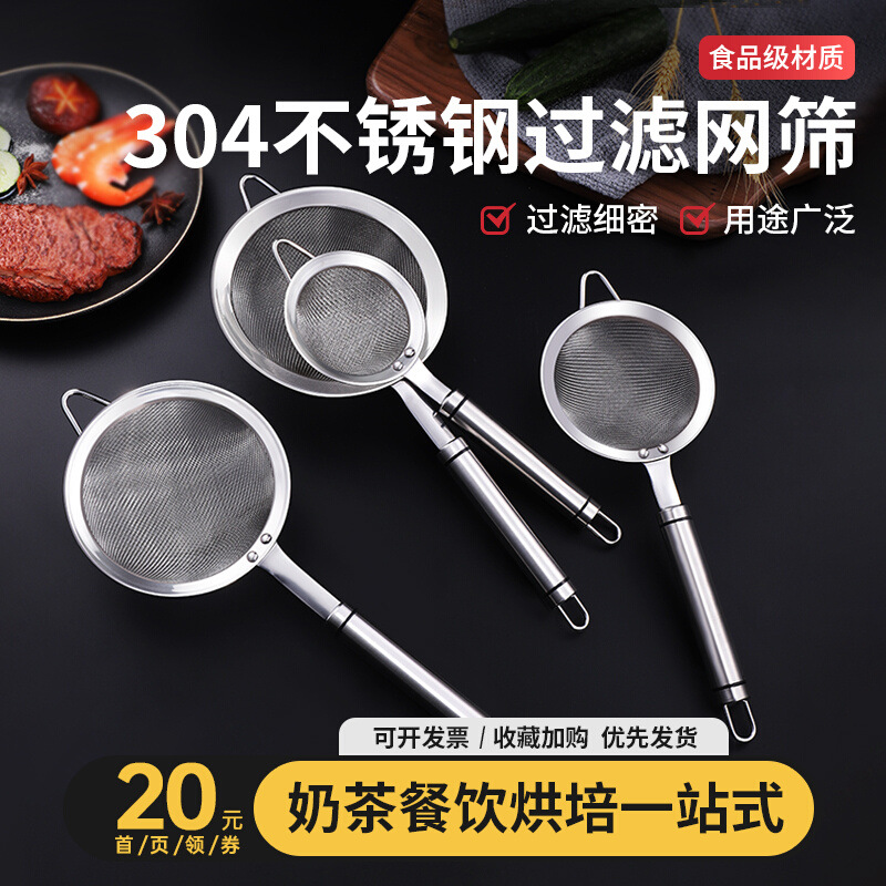 | nameOriginal | Wholesale 304 stainless steel soybean milk sieve ultra-fine filter strainer flour sifter cocoa powder sieve sugar powder sieve |