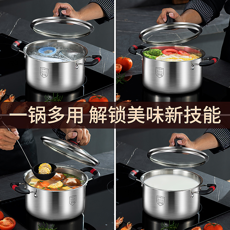 Wholesale 316 Stainless Steel Soup Pot Household Induction Cooker Pot Soup Non-stick Bottle Sterilizer Double Layer Gas Stove
