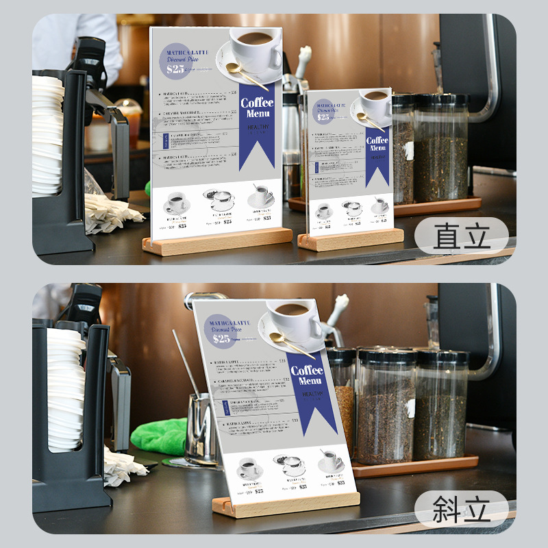 | nameOriginal | Wholesale acrylic l-type table card display card t-type strong magnetic Table sign a5 menu stand wooden base stand solid wood |