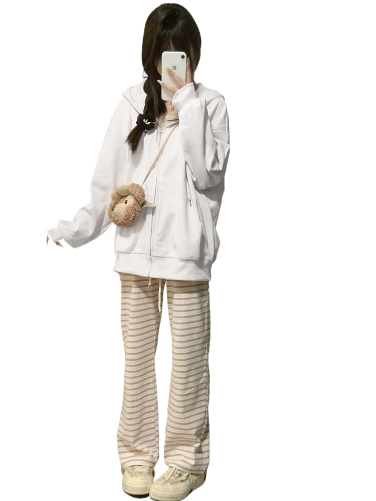 Wholesale American wear thin sweater women’s spring and autumn new oversize hooded baseball uniform zipper cardigan plus size