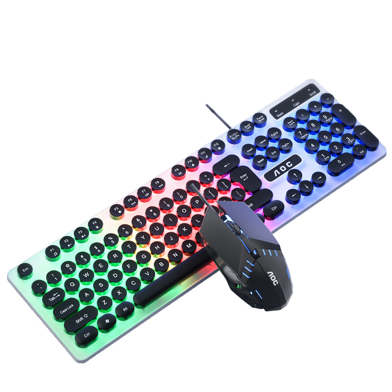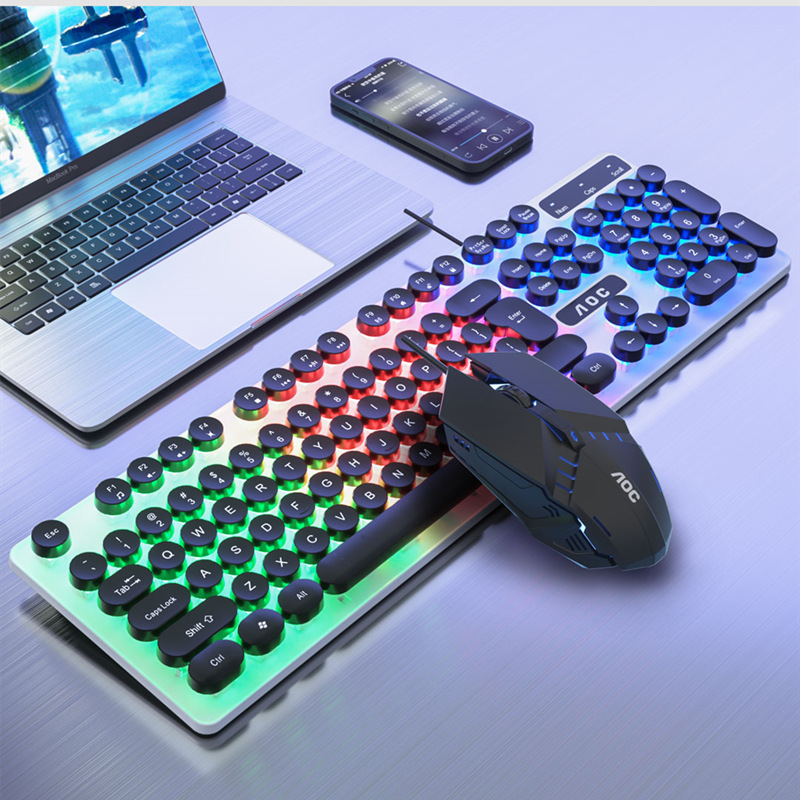 | nameOriginal | Wholesale AOC KM100 wired mixed color luminous usb keyboard mouse set punk round key cap cross-border supply |