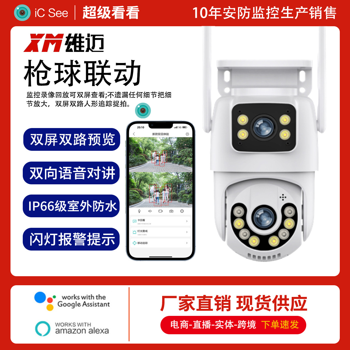 | nameOriginal | Wholesale binocular gun ball linkage integrated wireless surveillance camera 360 degrees no dead angle double picture outdoor night vision |