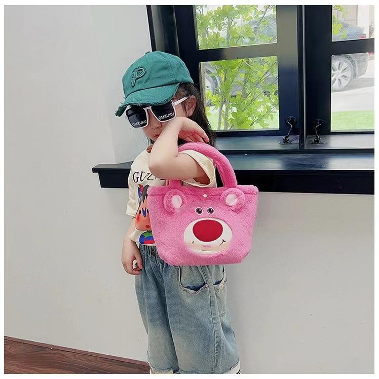 | nameOriginal | Wholesale Cartoon Strawberry Bear Plush Handbag Cute Doll Doll Children's Bag Female Accompanying Gift Tote Bag |
