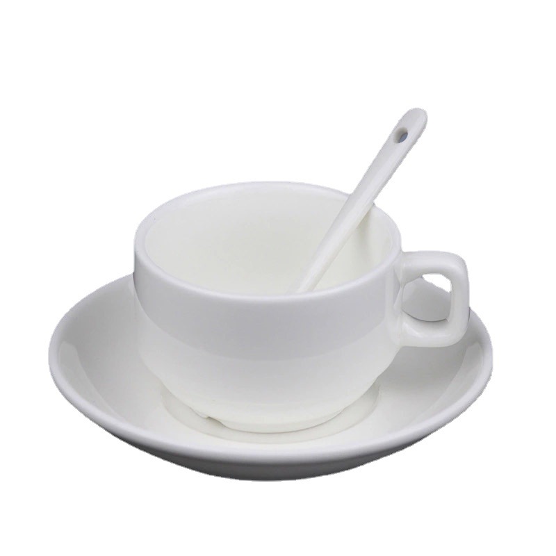 Wholesale Ceramic Coffee Cup Cup and Saucer Set Featured Household Tableware Simple Pure White Afternoon Tea Foreign Trade Gifts Office