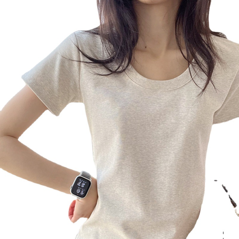 | nameOriginal | Wholesale classic basic U-collar gray all-match short-sleeved T-shirt women's American-style slim-fit slim half-sleeved top with low collar |