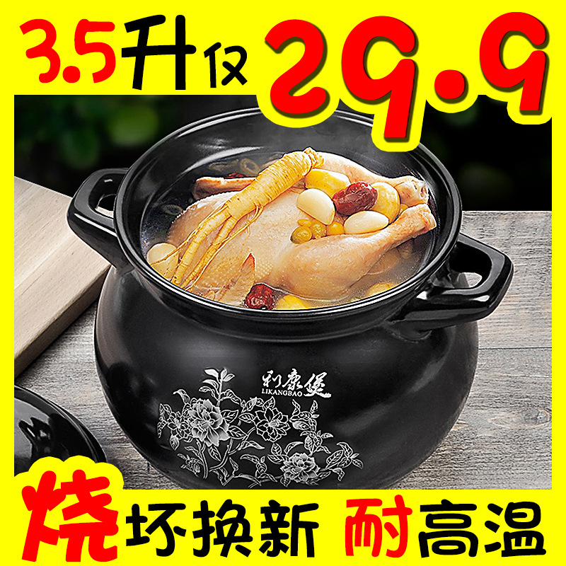 | nameOriginal | Wholesale clay pot stewed chicken soup traditional black casserole large capacity extra large stew pot household old-fashioned open fire gas |