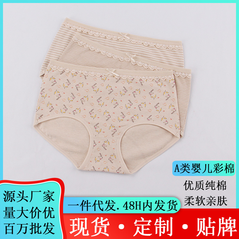 Wholesale cotton women’s underwear cotton large size student cute girl Xinjiang color cotton plus fat plus fat mm briefs