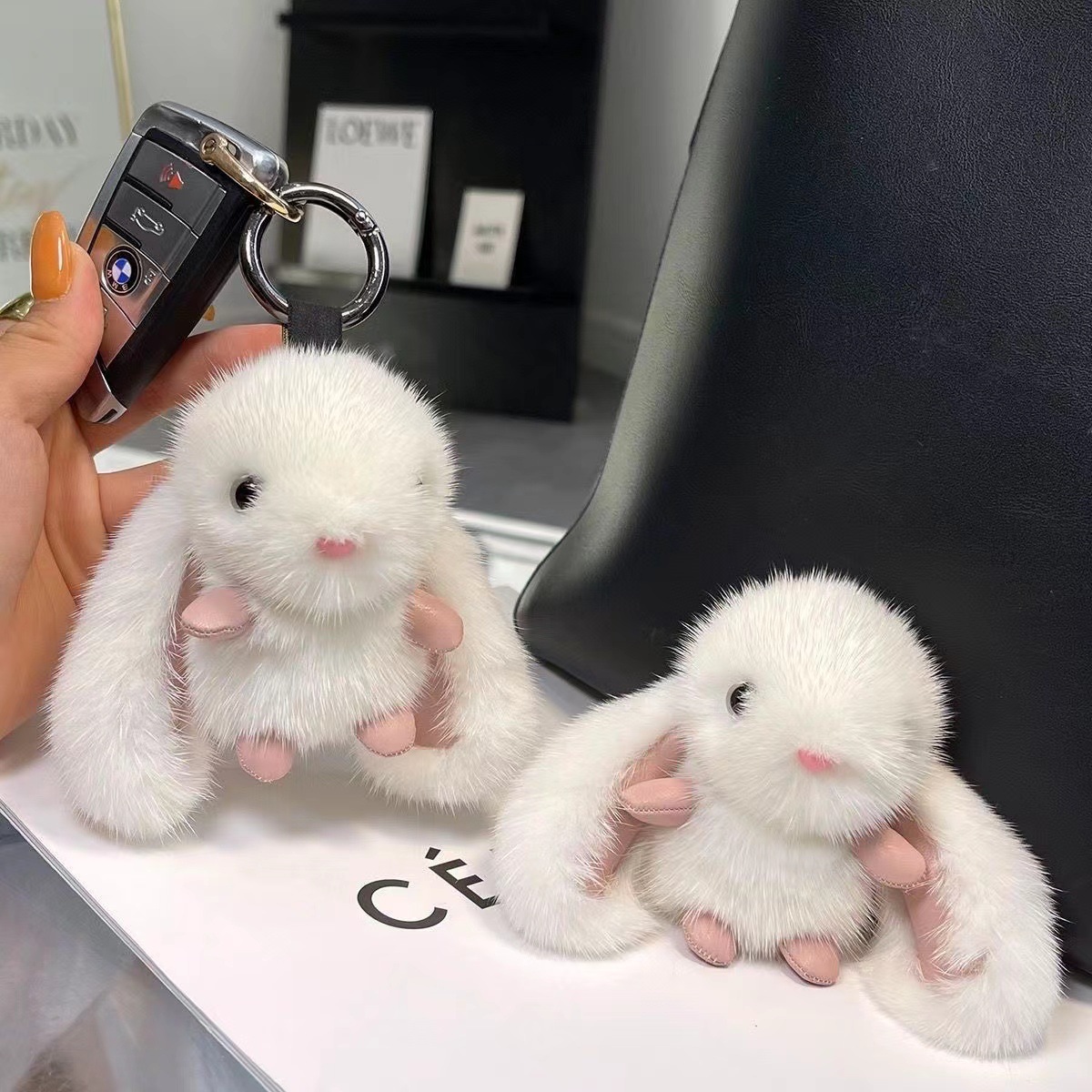 Wholesale cross-border cute exquisite mink plush rabbit pendant car keychain bag pendant birthday gift