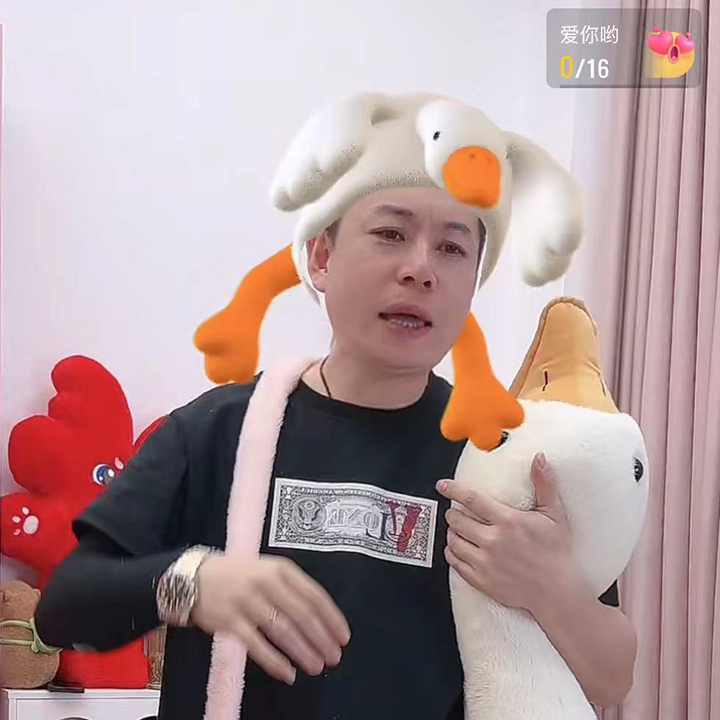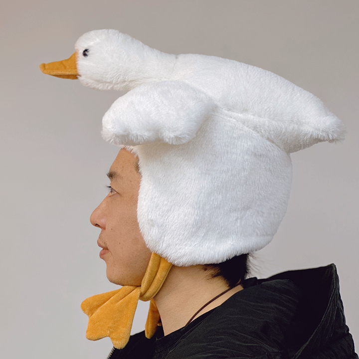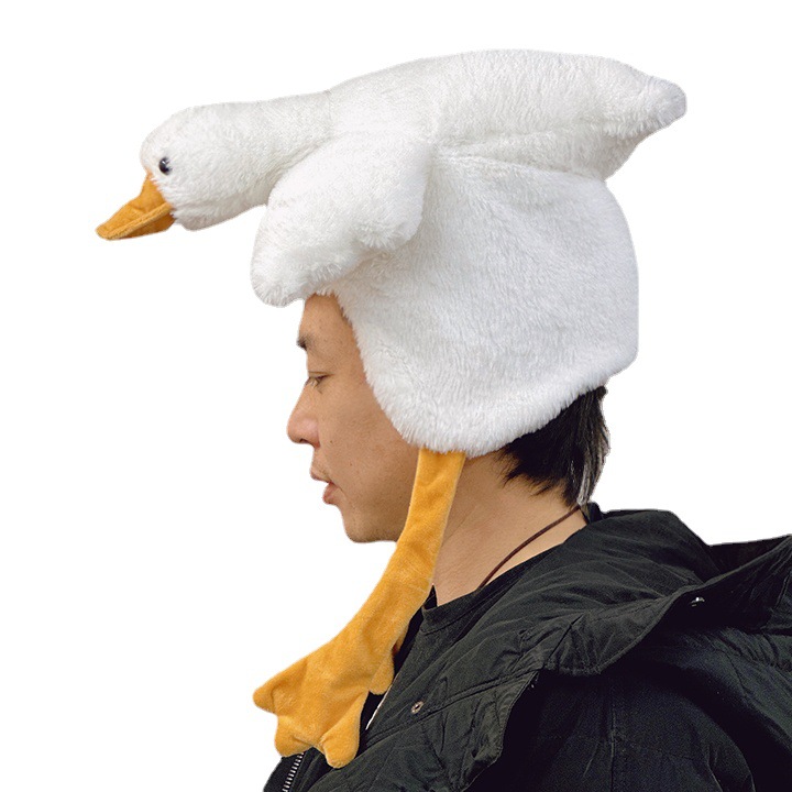 | nameOriginal | Wholesale cute cartoon girl heart plush funny open wings big white goose duck head hat photo show |