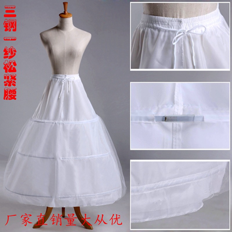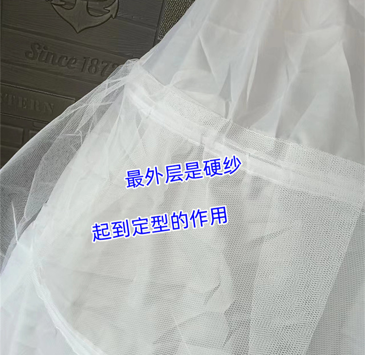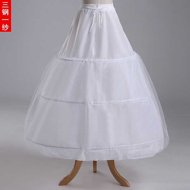 | nameOriginal | Wholesale direct selling bridal wedding dress skirt three circles 1 yarn hard mesh tuft skirt lining cloth elastic waist three steel one yarn |