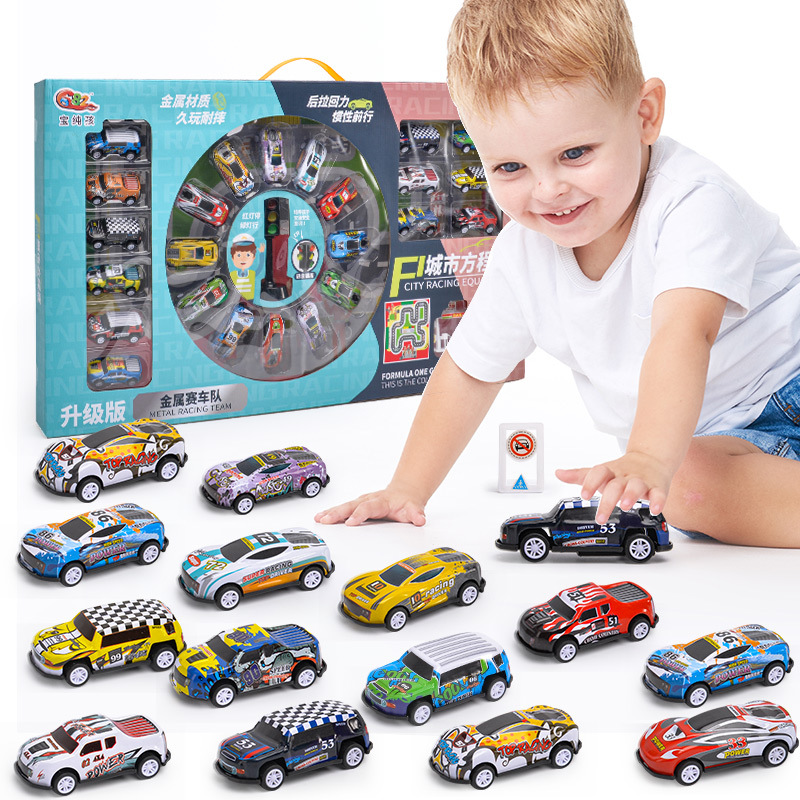 Wholesale drop-resistant gift box Children's inertia pull back alloy car metal racing model boy training gift