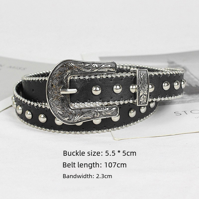 | nameOriginal | Wholesale European and American temperament Joker metal thin belt women's punk style jeans belt rivet decorative niche belt |