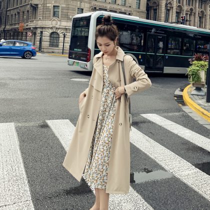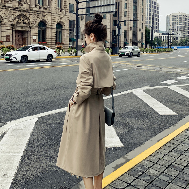 | nameOriginal | Wholesale fashionable loose large lapel double-breasted lace-up waist British-style slimming mid-length apricot trench coat for women |