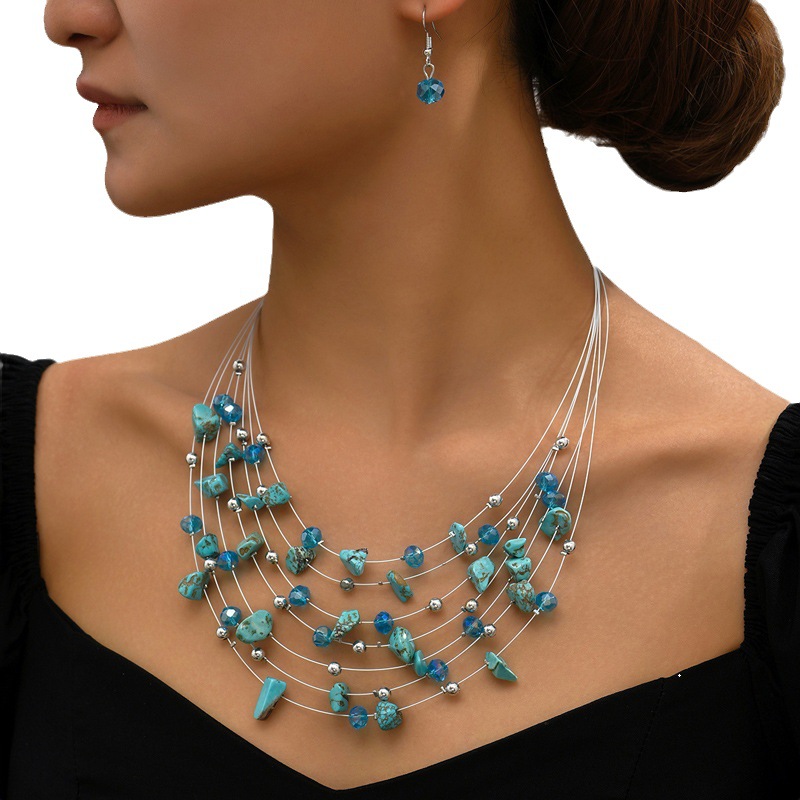 | nameOriginal | Wholesale foreign trade hot cross-border Europe and the United States exaggerated bohemian turquoise crystal multi-layer necklace earrings set |