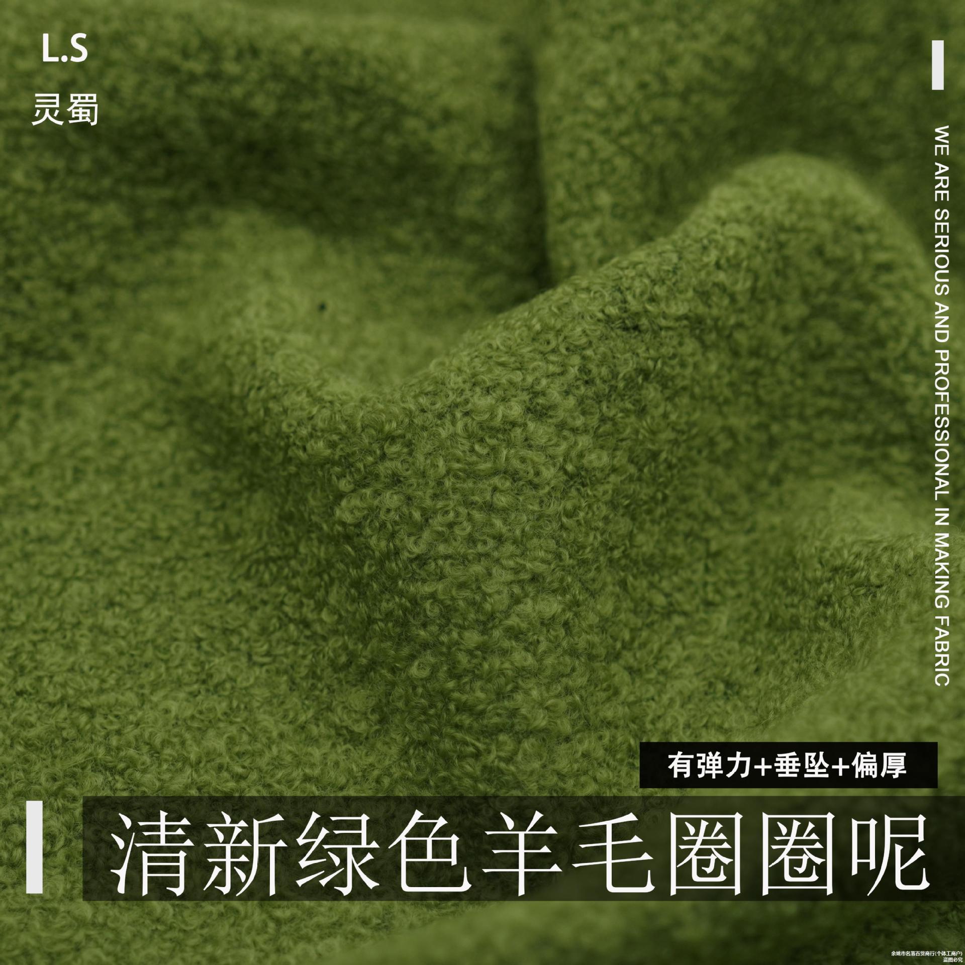 Wholesale fresh green circle wool tweed mahair fabric 630g autumn and winter overcoat tweed skirt micro-elastic