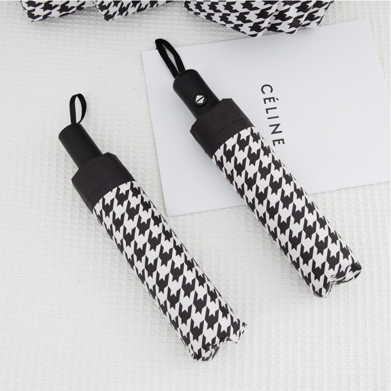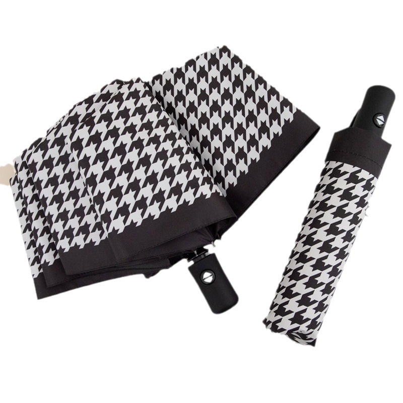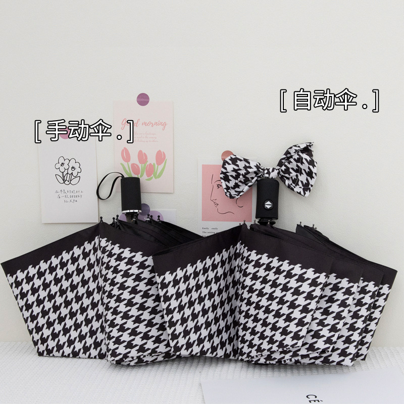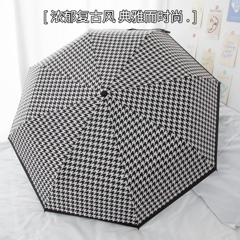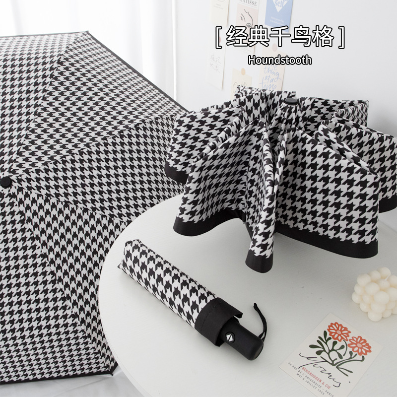 Wholesale full-automatic three-fold sun umbrella houndstooth folding umbrella black glue UV-proof sun protection sun umbrella