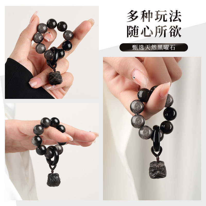 | nameOriginal | Wholesale imitation gold obsidian hand twist hand string fingertip plate play small string lion dance bodhi text play beads running ring accessories rosary beads |