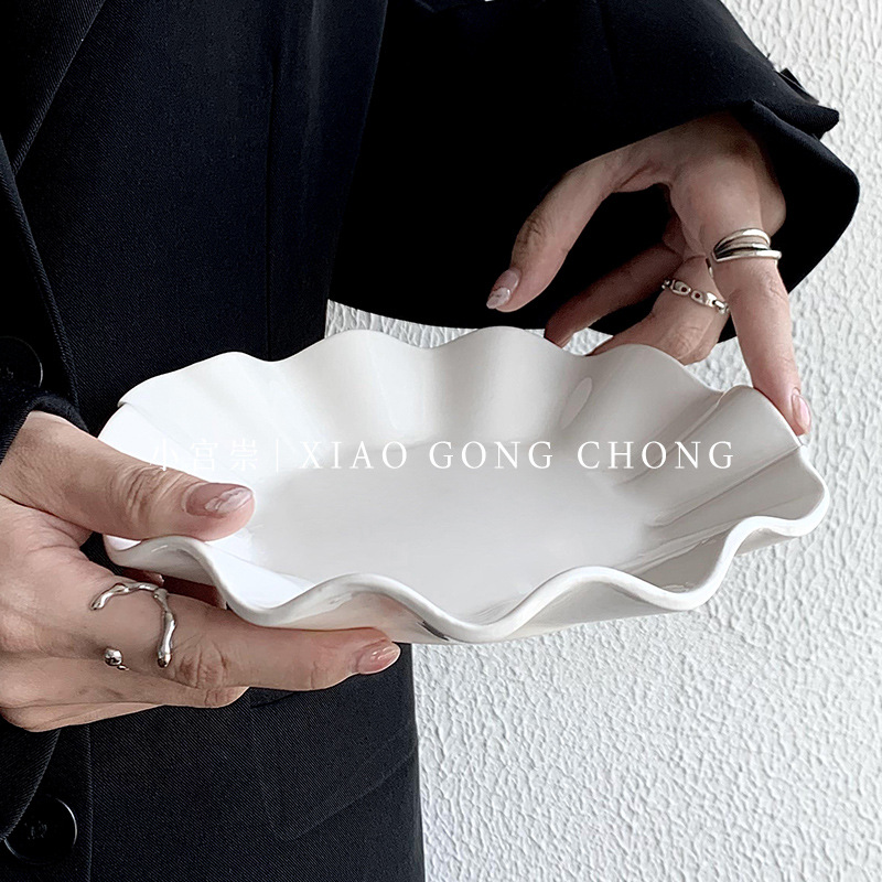 | nameOriginal | Wholesale ins style white wave flounced ceramic plate dessert snack plate cake salad decorative plate pasta |