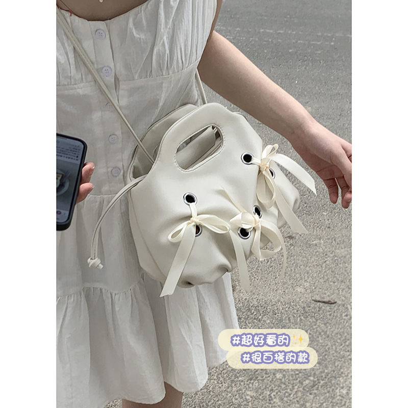 | nameOriginal | Wholesale Korean fashion handbag women's bag 2024 new pleated cloud bag bow ribbon shoulder messenger bag  |