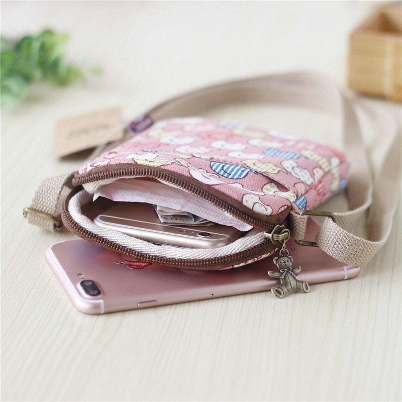 | nameOriginal | Wholesale Korean version of large screen double mobile phone bag ladies mini shoulder messenger bag coin purse mobile phone bag canvas bag cross-border |