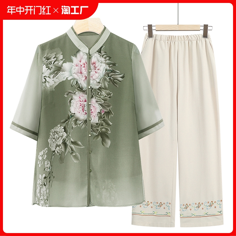 | nameOriginal | Wholesale middle-aged and elderly summer clothes suit grandma 2024 new chiffon mother summer coat old lady clothes |