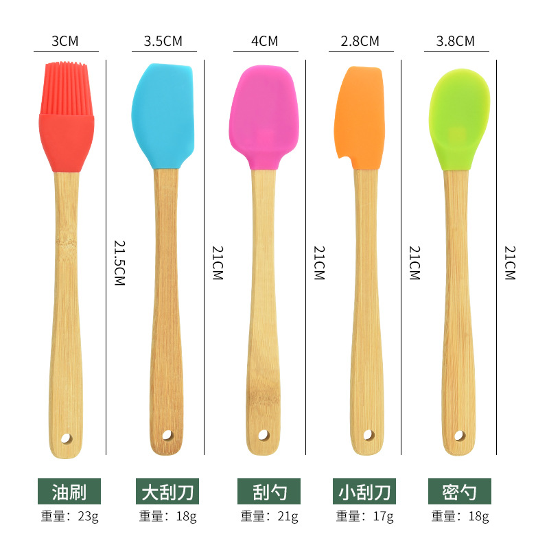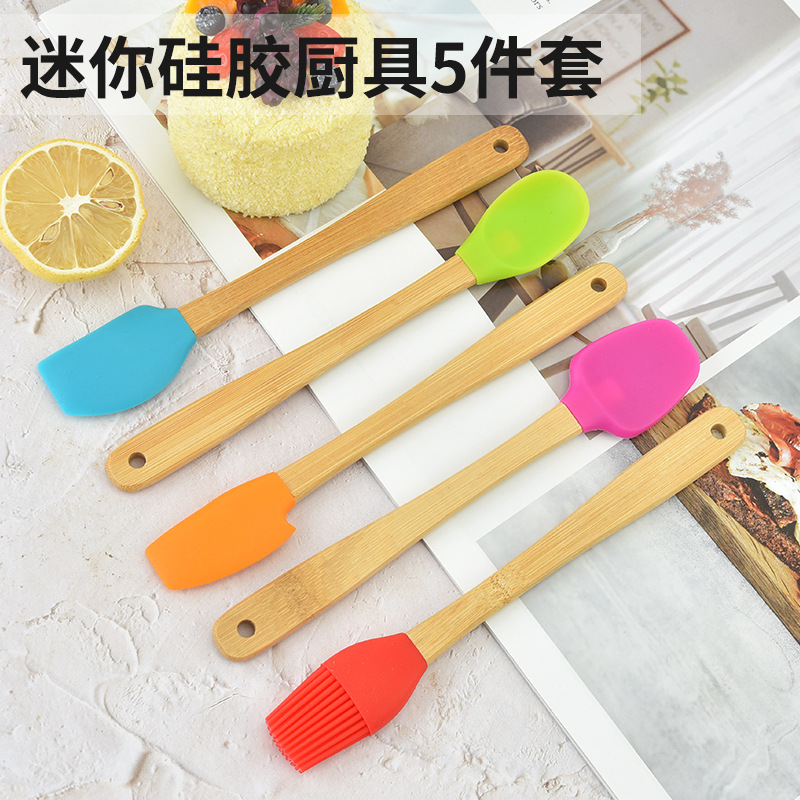 | nameOriginal | Wholesale mini silicone scraper small size scraper baking tools suit 5-piece spoon oil brush Silicone kitchenware |
