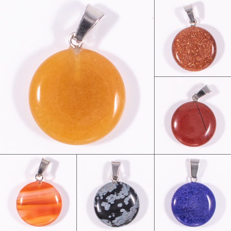 Wholesale natural stone round necklace pendant jewelry European and American fashion jewelry disc pendant pendant jewelry diy