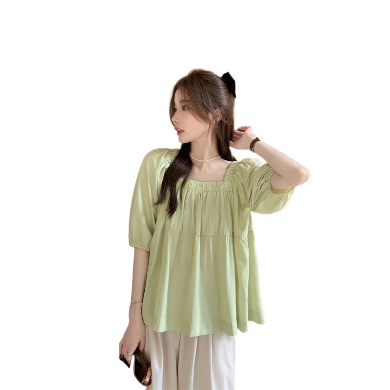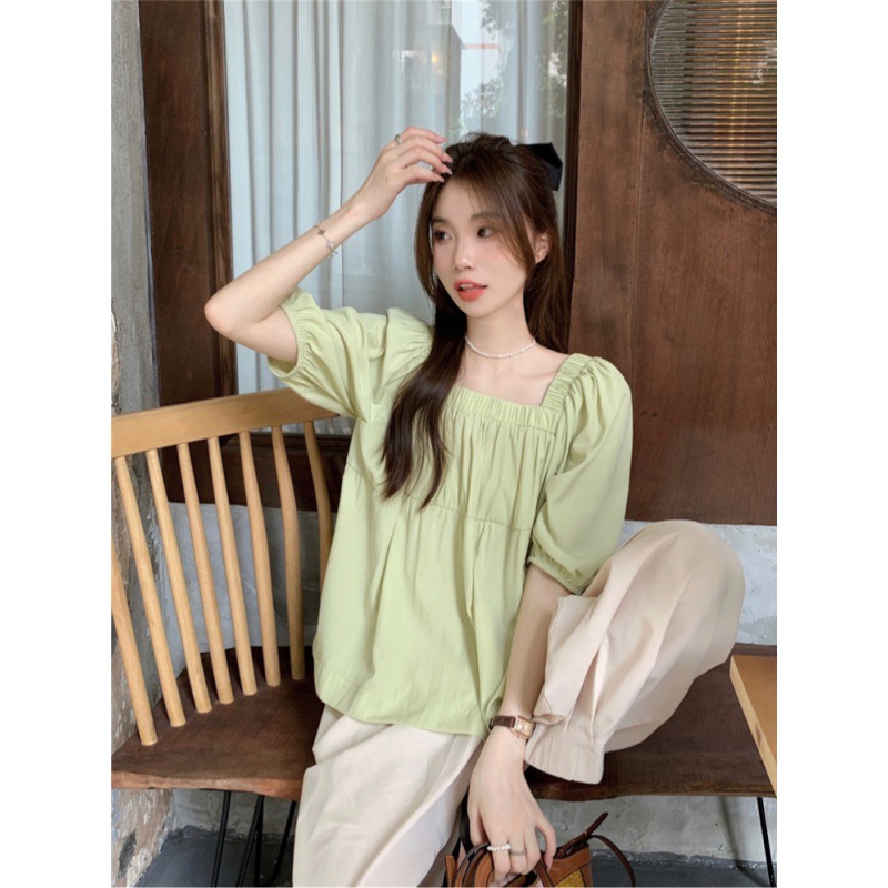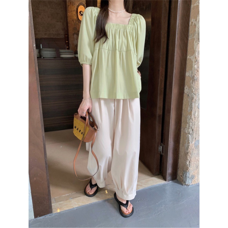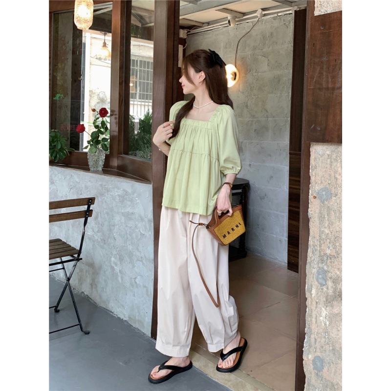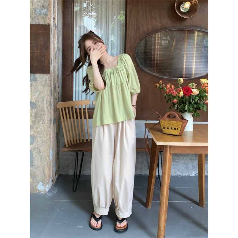 wholesale real shot! Korean Style Square Collar Small Shirt Loose Short-sleeved Top Loose Wide-leg Miscellaneous Haren Pants Trousers for Hair