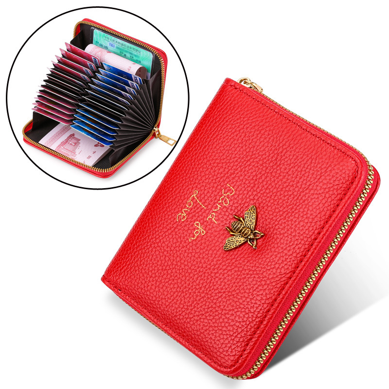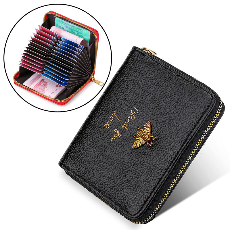 [Wholesale] Retro zipper small bee organ large capacity multi-function card unisex card bag